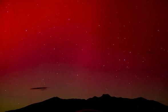 This is a bad sign. Red auroras are warnings in the Navajo-Diné culture. They represent a war or a calamity. The mountain on bottom is a silhouette of sisnaajinį́', the sacred mountain to the East. This is not good, at all.