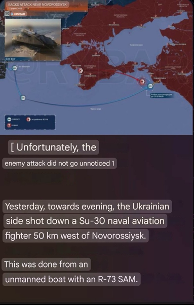 #Ukrainian military again doing what was thought impossible just a few years ago, setting #historical precedent, shooting down a #Russian SU-30 aircraft with a naval #drone.