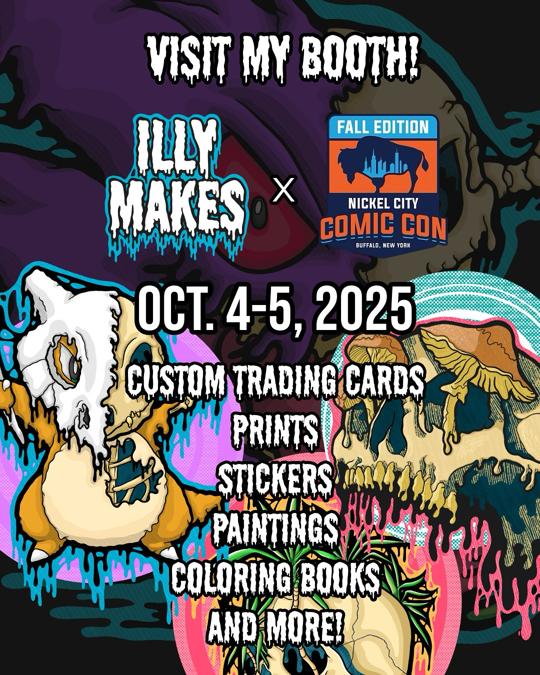 #nickelcitycomiccon #buffalony #comiccon2025 #skullart #pokemonart #spookyseason #artistalley #halloweenart