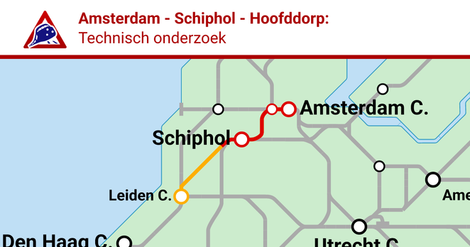 Er is een storing op het traject Amsterdam - Schiphol - Hoofddorp door technisch onderzoek. Deze storing begon op 19 oktober 2025 om 16:08.