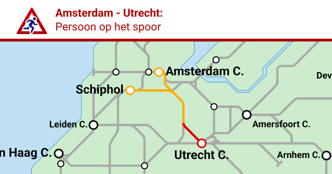Op 19 oktober 2025 was er een treinstoring op het traject Amsterdam - Utrecht door een persoon op het spoor. Deze storing is voorbij sinds 19 oktober 2025 om 19:31.