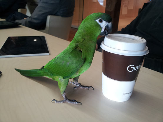 Random photo memory from 2014: Manda the ansarada office macaw. Can't imagine why, but people often don't believe we had a macaw just flying around the office.