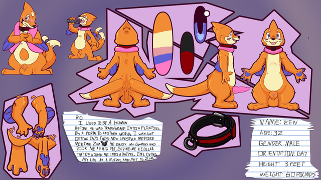 Ren is this absolutely precious little puddle that commissioned a ref sheet for himself. Originally it was going to be a floatzel, buuut I convinced him buizel is better~