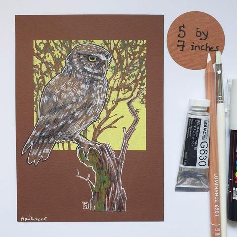 A small drawing of a barn owl at sunset. This original artwork would make a lovely gift for an owl lover...