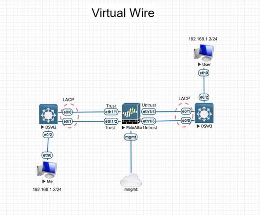 Virtual Wire в Palo Alto: Полное руководство. Здравствуйте, коллеги! Сегодня поговорим про Virtual Wire на Palo Alto и разберём, как это работает на практике. Для примера нам понадобится сам Palo Alto и два коммутатора — подойдут L2, L2+ или даже L3. Чутка теории) Начнём с того, что такое Virtual Wire. Это режим интерфейсов, который позволяет связать два сегмента сети «прозрачно», без маршрутизации и без изменения IP-адресов. По сути, Palo Alto в этом случае работает как фильтр, стоящий в разрыве, но при этом мы можем применять все политики безопасности. Есть несколько моментов, которые нужно учитывать: