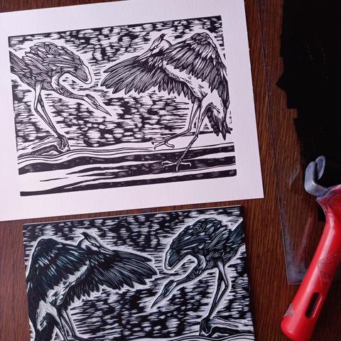 #heron #nature #linogravure #lino #gravure #Illustration #Mastoart #Fediart #printmaker #estampe #ParlonsGravure
