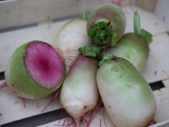 Radis d'hiver : les radis blanc, noir, bleu et red meat ont fait leur entrée sur l'étal du marché et sur https://www.local.direct/la-ferme-de-l-eclache !