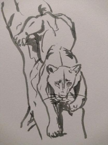 Lioness sketch made with grey Pigma brush pen. This brush pen has a very fine point that allows you to draw fine details and have a lot of variety in your lines. I like this pen a lot better than the Faber Castell Pitt brush pens I also have.