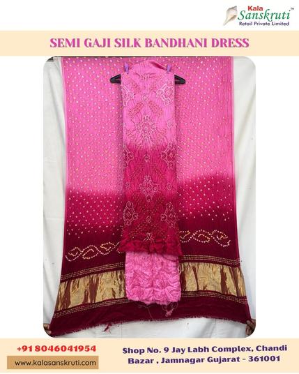 ๐Ÿ’ƒ Our all-over pink Gaji Silk Bandhani dress is pure joy you can wear. Handcrafted to perfection for your most vibrant moments. ๐Ÿ’– Shop this stunning look now! ๐Ÿ‘‰
