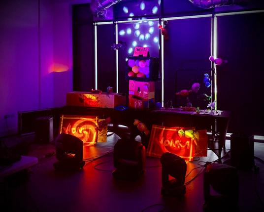 After surviving a wild three weeks in Denmark, I came back to teach an early-teens Creative Skills summer school in whatever space we could sequester. Showcasing a bit of audio but mostly lighting, with a Willy Wonka theme indulging my penchant for psychedelia. The kids enjoyed getting to play on professional kit with nary a rhyming mishap, and I picked up a few tips and tricks myself – as well as working on some new Trismegistus Hex material during the downtime.