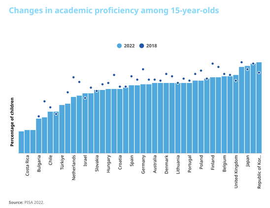 @ChrisMayLA6 scary how big the drop in #academic #proficiency in #Dutch #school children is...from near the top in 2018 to near the bottom end in 2022.
