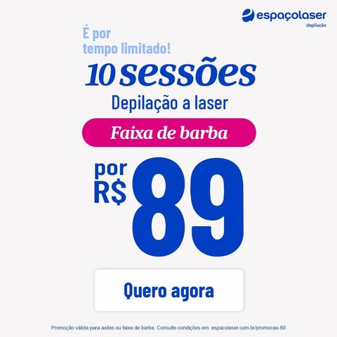 Aproveite a Promoção da Espaço Laser! Homens e mulheres podem garantir 10 sessões de depilação a laser por apenas R$ 89,00! Obtenha uma pele macia e livre de pelos com um procedimento rápido e eficaz.
