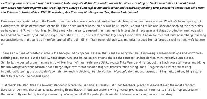 #AlWootton #dub #dubtechno #percussive #experimental #techno #electronic #Deadboy #London #UK #Puu #PuuRecords #SähköRecordings #Helsinki #Finland