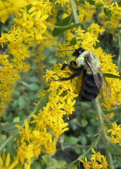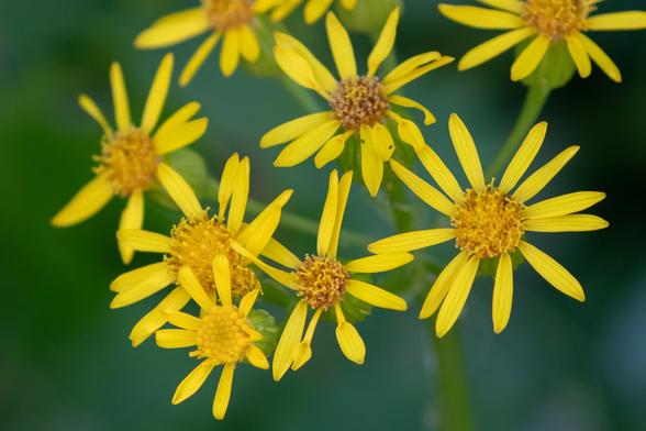 While other wildflowers are fading with the coming of Autumn, the water ragwort (Senecio hydrophilus) is blooming brightly and keeping the bumble bees well-fed.