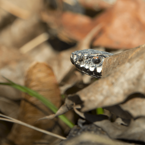 Maanantaina huomasin ensimmäisen kerran tämän runsaan vaaksan mittaisen kyyn, tiistaina muistin paikan ajoissa ja maltoin pysähtyä kuvaamaan. Ikään kuin se olisi kesken matkan jähmettynyt paikalleen.
