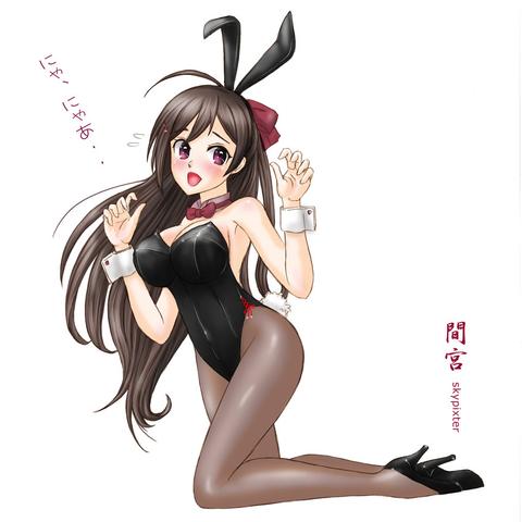 #1girl #absurdres #animal_ears #black_leotard #black_pantyhose #black_shoes #bow #bowtie #breasts #brown_hair #character_name #commentary_request #detached_collar #fake_animal_ears #high_heels #highres #kantai_collection #kneeling #leotard #long_hair #looking_at_viewer #mamiya_(kancolle) #medium_breasts #open_mouth #pantyhose #playboy_bunny #ponytail #rabbit_ears #rabbit_tail #red_bow #red_bowtie #red_eyes #shoes #simple_background #skypixter #smile #solo #tail #white_background #wrist_cuffs https://danbooru.donmai.us/posts/3052548