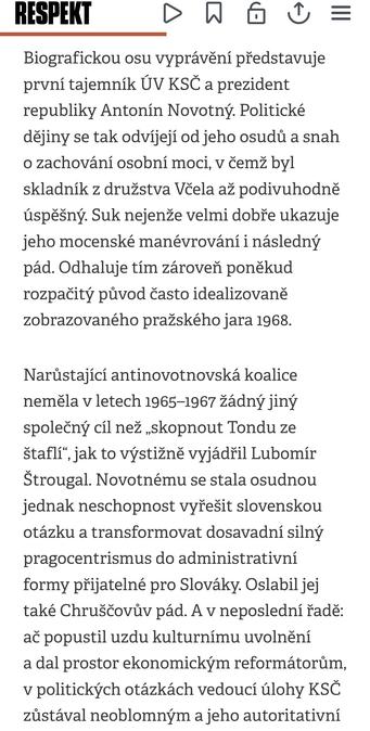 Suk mj. odhaluje poněkud rozpačitý původ často idealizovaně zobrazovaného pražského jara 1968.
