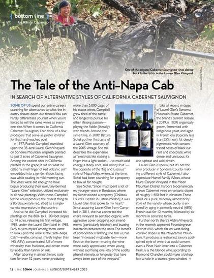 In the current issue of SOMM Journal, my Bottom Line column on searching, and finding, alternative styles of Cabernet Sauvignon on Sonoma Mountain and in the Moon Mountain District.