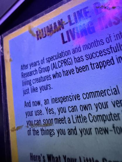 This is the back of a copy of Little Computer People for the C64.