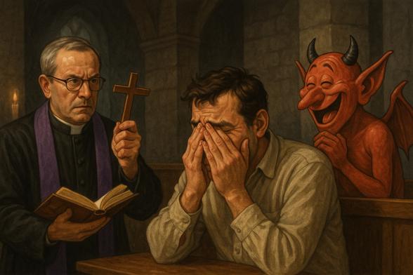 Un exorcista, c’est l’art de dire : « Dehors le démon ! » Mais parfois, le démon est moins effrayant qu’embarrassant. Aujourd’hui, place à l’exorcisme des pensées impures.