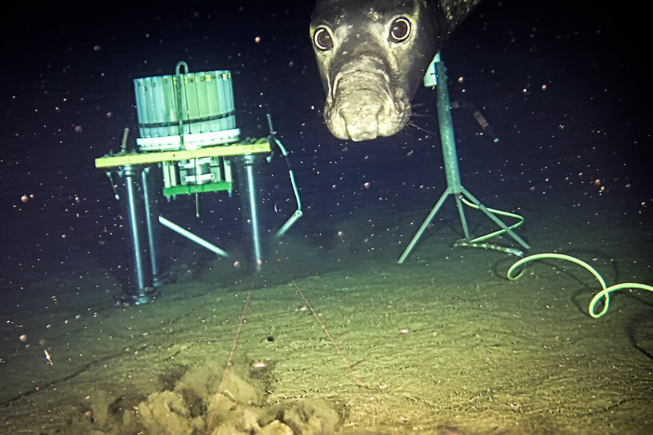 Northern elephant seals were repeatedly captured on camera in the deep Pacific Ocean using sonar from an Ocean Networks Canada (ONC) observatory as a dinner bell to forage for their next fish feast, according to a new study led by University of Victoria researchers.