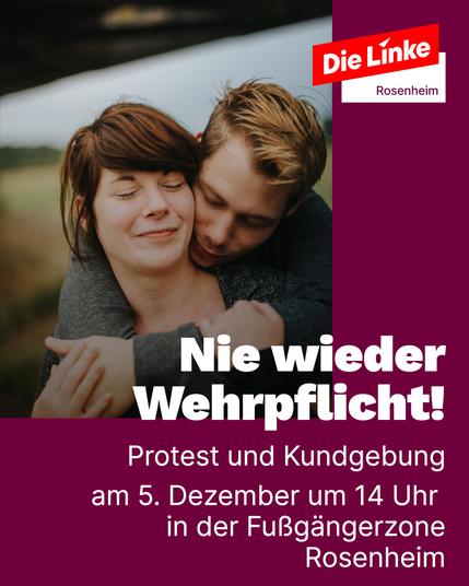 Die bundesweite Initative https://schulstreikgegenwehrpflicht.com/ ruft für den 5. Dezember 2025 zu #Schulstreik, Demonstrationen und Kundgebungen gegen die Wiedereinführung der #Wehrpflicht auf. Wir sind in #Rosenheim mit dabei: ab 14 Uhr in der Fußgängerzonge Münchener Straße. Wir haben nämlich auch was gegen Zwang und #Kriegsdienst: