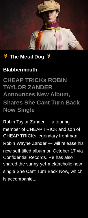 #CHEAPTRICK #ROBINTAYLORZANDER #AnnouncesNewAlbum #Shares #album #newalbum #tour #newrelease #single #announcement #Blabbermouth #metal