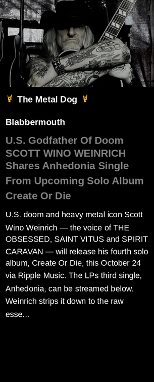 U.S. Godfather Of Doom SCOTT 'WINO' WEINRICH Shares 'Anhedonia' Single From Upcoming Solo Album 'Create Or Die'