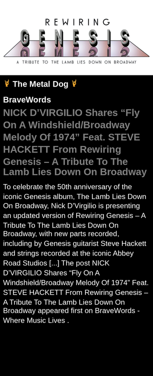 NICK D’VIRGILIO Shares “Fly On A Windshield/Broadway Melody Of 1974” Feat. STEVE HACKETT From Rewiring Genesis – A Tribute To The Lamb Lies Down On Broadway