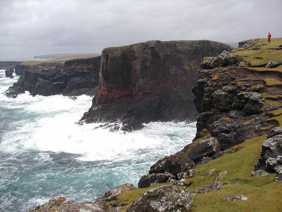 Spectacular cliff scenery near Eshaness lighthouse on the west coast of Shetland on a stormy day. More pics and info: https://www.undiscoveredscotland.co.uk/shetland/eshaness/index.html
