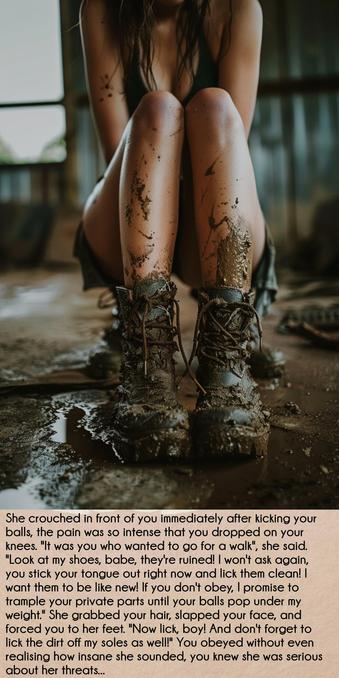 #femdom #cruelgirlfriend #violentfemdom #ballbusting #ballkicking #cbt #cockballtorture #shoelicking #shoelickingslave #muddybootsfetish #bootfetish #girlsfeet #femdomcaption #femaledominance #femdomlife #footfetish #bootcleaning