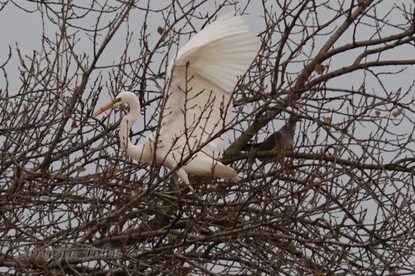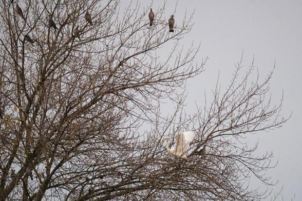 Ich feiere die #Ringeltaube die völlig entspannt sitzen bleibt, als sich der #Silberreiher mit Schwung neben sie wirft.