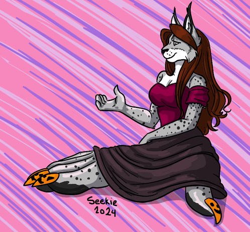 I knew I wanted to work on at least one artwork this year that was one of my OCs in a poofy gown; but after finding a pose online that really grabbed my attention plus struggling to figure out which OC to use, I ended up defaulting on Snow Princess Drake. The result is a lot of experimentation with lighting, cloth fabric and even a a holographic tutorial I found on Bluesky was used. I was very worried it was going to look too much like water but it ended up looking amazing!