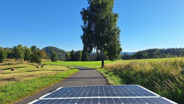 Rekord včera nepadl, z řady důvodů. Jednak dny jsou už přeci jen kratší, ale hlavně trasa vedle přes Lužici, která je v podstatě hustě zalesněná, což pro solární kolo není to pravé. Rovinatá krajina je sice pro rekordy ideální, ale silnice nevedou vždycky správným směrem. Takže jen 203 km...