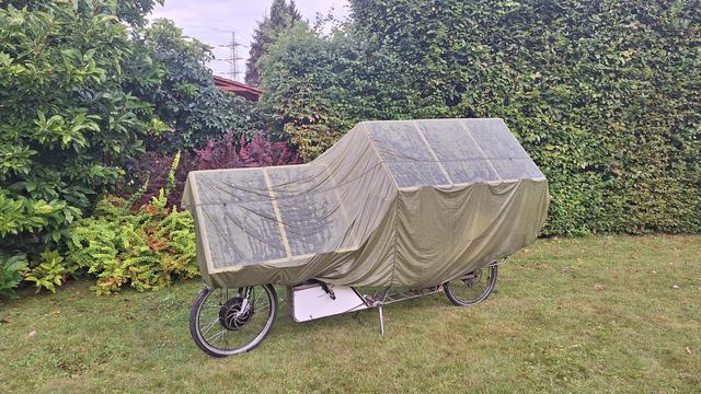 Takhle vypadá #solarbike přes noc, s přehozem proti dešti....