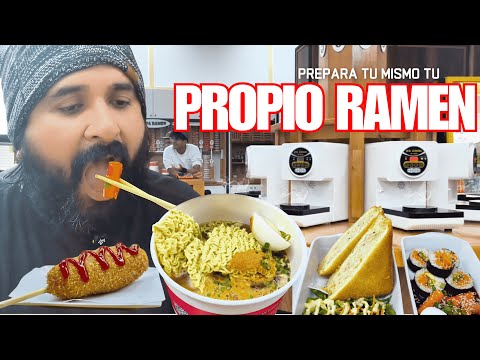 SoyNano encontró "Maru", un lugar con MÁQUINAS de ramen Self Service. 🍜 Además, probó de todo: Kimbab, Corndogs dulces y Tteokbokki.