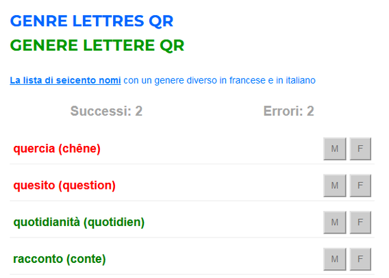 🇮🇹 Sostantivi. Maschili in francese, femminili in italiano: quiz sulle lettere QR.