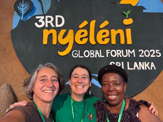 Alessandra Turco di ARI, Morgan Ody attuale coordinatrice generale della La Via Campesina e Elisabeth Mpofu ex coordinatrice generale @ Nyéléni Global Forum