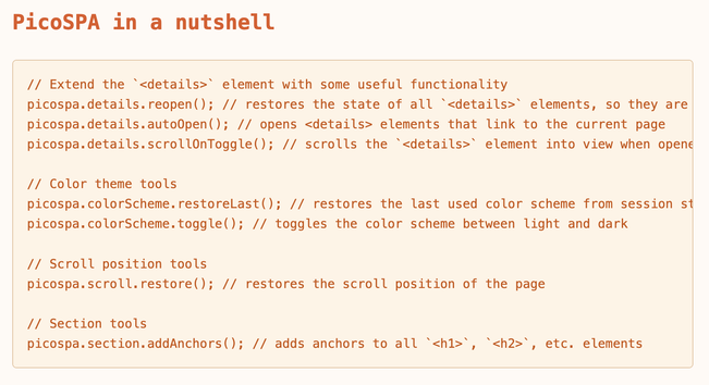 I collect small functions I reuse from time to time in https://picossg.dev/tools/picospa/ which gives sites a #SPA like feeling despite (allowing to be or) being #MPA sites.