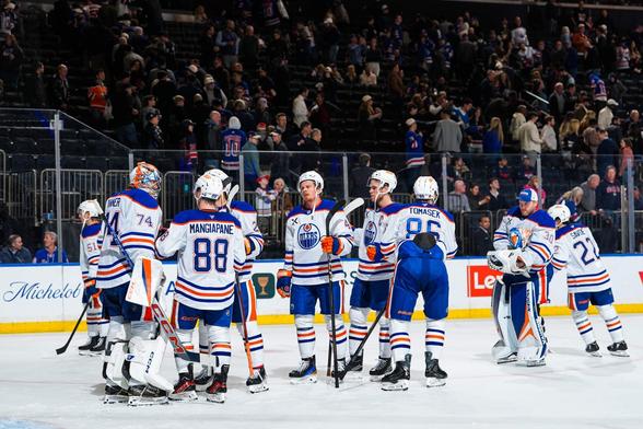 https://www.nytimes.com/athletic/6718043/2025/10/15/edmonton-oilers-roster-lineup-stuart-skinner-shutout/ The Oilers opened a five-game road trip with a 2-0 win over the Rangers at Madison Square Garden on Tuesday night.