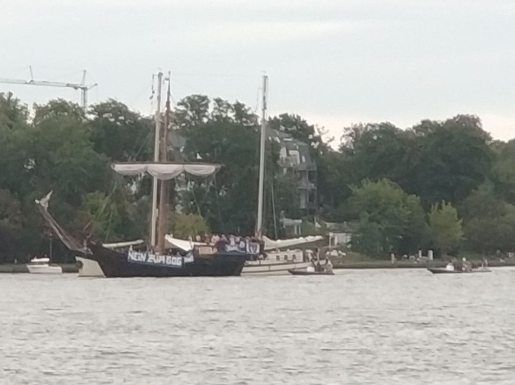 auch wasserseitig ;) Bullen mit drei Schlauchbooten hinter her. #