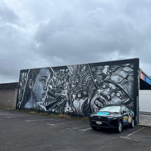 Kotahi/Uno by Mexican artist Paola Delfín @paola_delfin at 88 Robert Street, Whangārei 0110, New Zealand in February 2019 for Street Prints Manaia, International Art Festival @street_prints which had the theme “Tui ate muka Tangata – Weaving the Thread of Humanity.” Photos taken February 2025. Thanks to @streetartcities app for leading me to Whangārei.