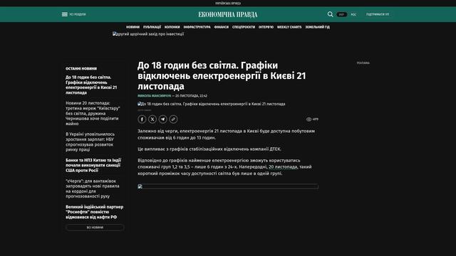 «Bis zu 18 Stunden ohne Strom: Zeitpläne für Stromausfälle in Kiew am 21. November»