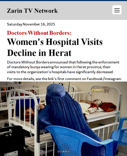 Doctors Without Borders announced that following the enforcement of mandatory burqa wearing for women in Herat province, their visits to the organization's hospitals have significantly decreased. This new restriction, which began on November 5th, has further limited women's access to essential healthcare services.