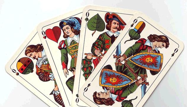 Entre le valet et la dame, l’ober du jeu de cartes allemand correspond à peu près au cavalier du jeu de tarot. Les feuilles remplacent ici les épées ou les piques.