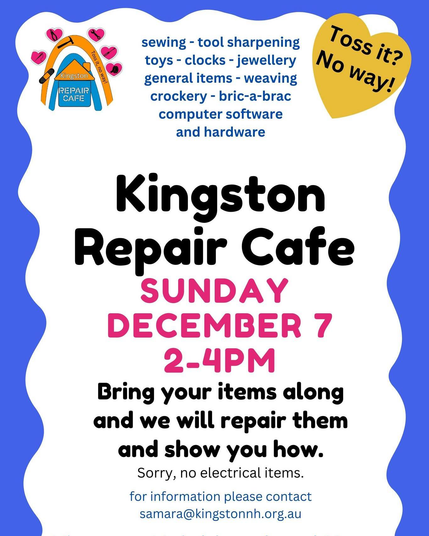 I'll be at the next Repair Cafรฉ, at the Kingston Neighbourhood House https://www.kingstonnh.org.au/, with all my gear to fix-up computers and give them a new breath of life!
