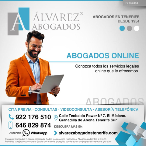 Abogados Online. Alvarez Abogados Tenerife y las soluciones legales online pueden ahorrarle tiempo, dinero y agilidad. No lo dude y visite nuestra web para conocer todos los servicios legales online que le ofrecemos. Desde Tenerife ofrecemos en toda Canarias: Consultas Jurídicas, Cita Previa, Videoconsulta y Asesoría Jurídica Telefónica.