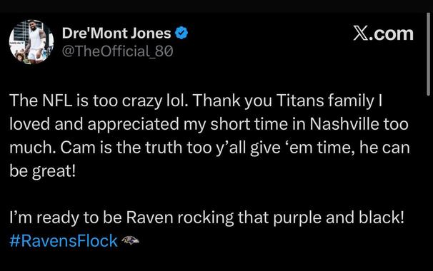 In case you missed it earlier tonight, the Tennessee Titans traded Dre’Mont Jones to the Baltimore Ravens. The…