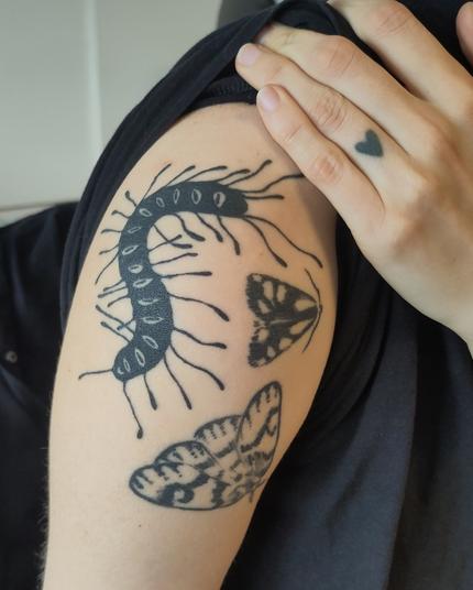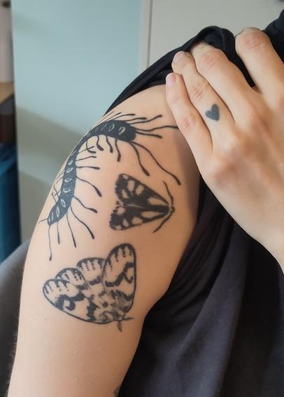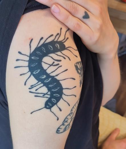 A friend came by to get a seahorse from my flash. His collection has been steadily growing since my apprenticeship. The bug above is healed 5 years.