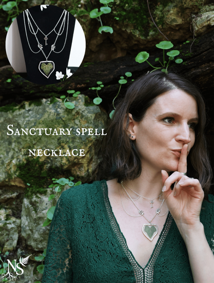 Enter your secret garden with the Sanctuary Spell necklace. This handcrafted delicate piece of jewelry showcases a stained glass pendant designed to carry the secrecy of nature's whispers wherever you go. Encased within thin glass are real pressed ivy leaves, each carefully selected and arranged to highlight their intricate beauty and rich symbolism. Some leaves and key charms add poetry to this unique design. The Sanctuary Spell necklace offers a variety of shapes to suit your taste. They will make a stunning addition to your collection or a thoughtful gift for someone special.